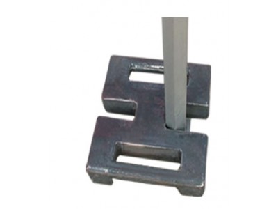 The weight simply slides around the hexagon leg and sits over the foot plate.