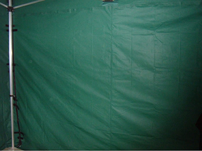 Made from durable polyester fabric. Easy to secure to roof top with full length Velcro strip on top of wall, Velcro ties on sides to attach to legs.